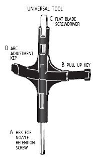 - INCREASING THE ARC: Insert the plastic key end “D” of the universal tool into
