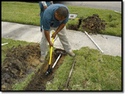 NOTE: Soil that is too hard or rocky may require tunneling either by hand or with a machine that can bore a hole under the sidewalk. You can also contact an irrigation or landscape contractor to do the job, for a list of contractors in your area click here.