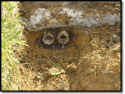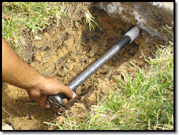 Although soil conditions and experience can determine the speed of the installation; in the example here; the pipe was installed in under 60 seconds. Once the pipe is installed; you can glue on to the pipe and continue running pipe; place a smaller size pipe through the installed pipe or you can use the installed pipe as a sleeve for wires. If more sleeves are needed; just simply repeat the steps and install as many pipes as needed. |