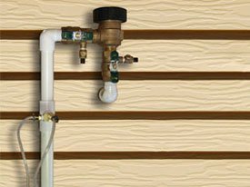 The concentrate is pumped through a small tube that connects to a special mixing chamber and saddle valve. These are installed directly onto the water supply after the backflow preventer. |