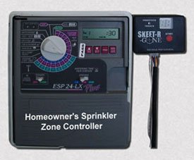 Skeet-R-Gone is an easy to operate pest control unit that can be installed onto any new or existing sprinkler system. Skeet-R-Gone utilizes your sprinkler to distribute an eco-safe concentrate over your entire lawn eliminating both mature and larvae mosquitoes, and other pests. Click here to purchase Skeet-R-Gone. |